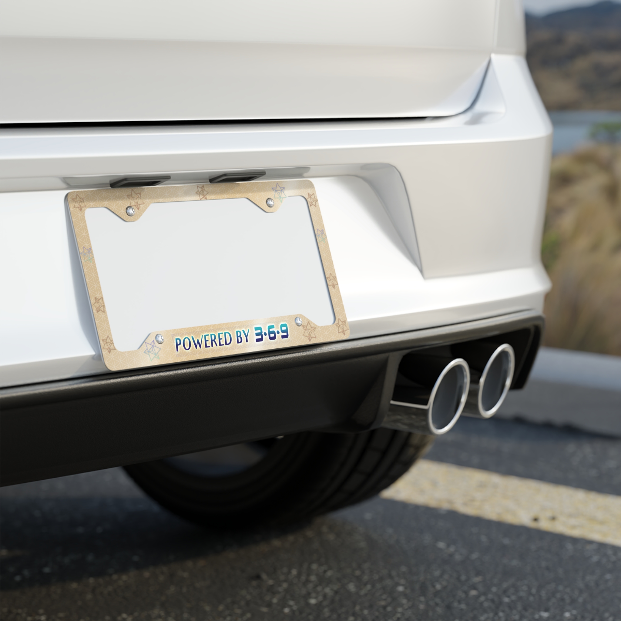 Make a statement about energy with this Nicola Tesla inspired license plate frame. Merkabas (light body vehicles) and a subtle Flower of Life pattern overlays the golden background field.